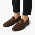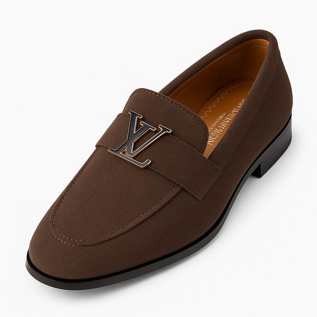 BROWN SUEDE LOAFERS WITH LV BUCKLE